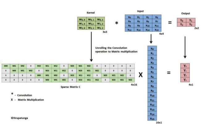 자 이 경우 위에서 구한 Sparse Matrix C를 transpose 시킨 행렬에 output vector를 곱해주어 다시 input을 복원시키는 방법으로 연산을 수행하게 됩니다. 이 방법이 바로 fractionally strided convolution입니다. 이렇게 transpose시킨 행렬을 이용하기 때문에 transpose convolution이라고도 표현합니다.