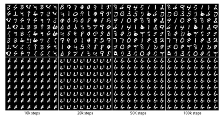 GAN은 2014년에 발표된 이후로 생성 모델의 핵심 아키텍쳐가 되었습니다. 하지만 GAN이 무조건 만능은 아니었는데요. 첫 번째로 "학습이 불안"하다는 점이 대표적인 한계점이었습니다. 다음 그림을 보시죠.