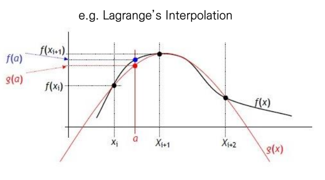 여기서 추가적으로 '움직임'을 수행하는 방법으로는 'Interpolation'을 사용합니다. 아래 예시는 라그랑지 보간법의 예시 그림입니다.