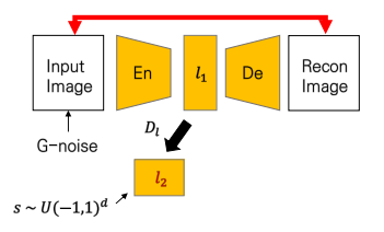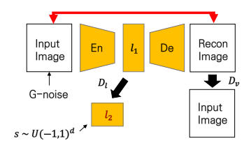 말 그대로 오토인코더인데, input의 가우시안 노이즈를 섞어주는 것이 차이점입니다. 일반적으로 일반 오토인코더보다 노이즈를 살짝 준 이미지를 넣었을 때, 과적합을 줄이고 모형의 generalizability를 확보할 수 있다고 합니다. 저 denoising autoencoder를 바탕으로 계산되는 재구성 오류가 본 모형에서 사용되는 loss function 중 하나가 됩니다. 일반적으로 사용되는 MSE loss를 사용하였습니다.