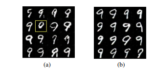 예를 들면 위의 (a)에 있는 노란색 박스에 있는 샘플처럼 9를 given class로 학습을 해서 열심히 9로 만들게끔 해도 간혹 0처럼 보이는 샘플들이 만들어지기도 하였음을 언급합니다. 이 이유로는 저자는 latent space 내의 모든 지역에서 학습하는 동안 샘플링을 수행하는 것이 불가능하기 때문이라고 언급합니다. ( 이 부분이 저도 명확하게 이해가 되지는 않았습니다. )