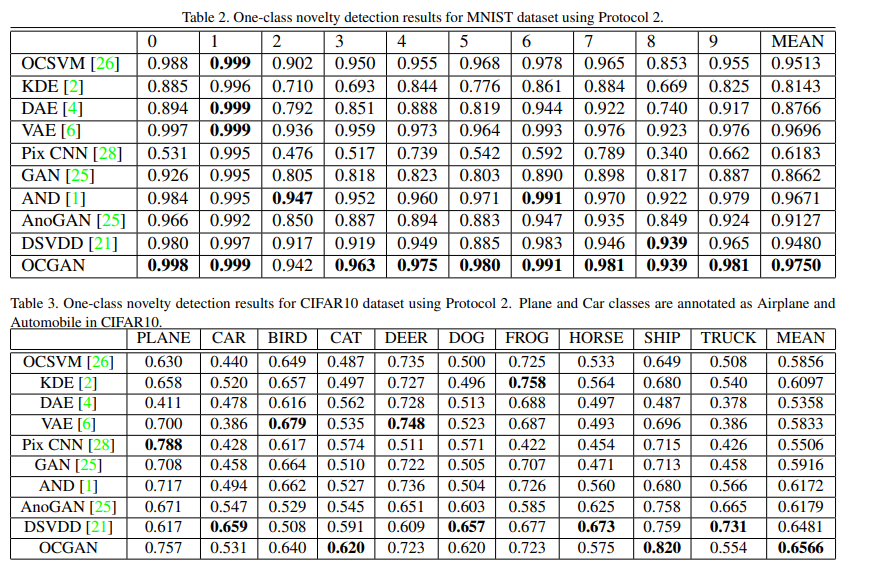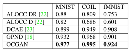 Perera, P., Nallapati, R., & Xiang, B. (2019). Ocgan: One-class novelty detection using gans with constrained latent representations. In Proceedings of the IEEE/CVF Conference on Computer Vision and Pattern Recognition (pp. 2898-2906).