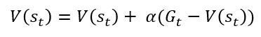 MC Method에서는 value를 업데이트하는 방법으로 아래의 방법을 사용하였습니다. 즉, 감쇠된 누적 보상의 합 Gt를 이용하는 것이죠.