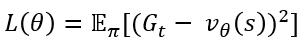 여기서도 바로 Gt와 V(st)의 차이를 바탕으로 업데이트를 수행하게 됩니다. 바로 이 콘셉을 활용해서 정답지로 Gt를 사용하는 것입니다. 즉, 아래 처럼 손실 함수 L이 정의되게 됩니다.
