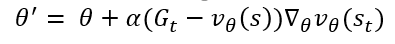본 수식에서 expectation이 붙은 이유는 모든 상태 s에 대해서 L을 최소화하는 것은 사실상 불가능하기 때문에 정책 함수 π를 이용해서 방문했던 상태 s에 대해서만 L을 최소화하면 더 효율적으로 문제를 풀 수 있기 때문입니다. 그래서 저 expecation에 대한 gradient 값을 구하게 되고 ( 이는 expectation을 구하는 방법으로 샘플을 뽑아 계산하게 됩니다. ) 그렇게 구한 gradient를 바탕으로 네트워크의 θ를 update하게 됩니다. 하지만 위에서 언급드렸듯 v_true을 알 수 없는 문제가 발생하는데 바로 이 v_true를 대신해서 Monte Carlo Return과 TD target을 사용합니다. 이들은 MC method와 TD method에서 자세한 건 추후에 다루도록 하겠습니다.