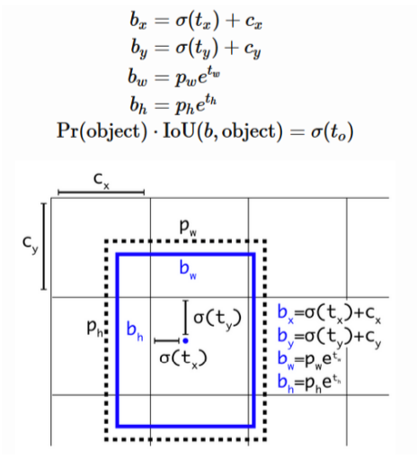 예측 bbox의 x,y 좌표가 중심 cell 내에서 벗어나지 않도록 Direct Location Prediction 적용