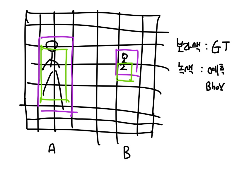 다음 term의 경우 w, h에 대한 loss 계산인데 저 항이 추가된 이유는, 일종의 standardization을 수행해주기 위함입니다. 예를 들어보면,