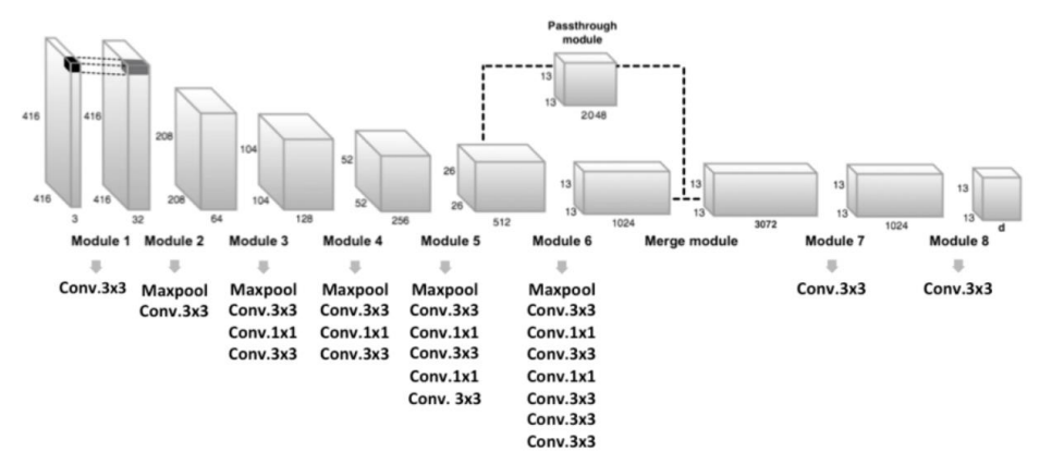 다음에 feature extractor 부분에서 조금 특이한 구조를 추가하였는데 이는 바로 ‘Passthrough module’을 사용한 ‘fine grained feature’를 도출하는 부분입니다. 그림을 살펴보겠습니다.