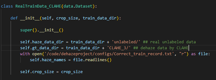 데이터셋은 앞서 언급드렸듯 RESIDE 데이터셋, 구체적으로 pre-train 시에는 OTS, Fine-tuning 시에는 URHI를 사용하였고, validation 시에는 SOTS(Synthetic Objective test set)를 사용하였습니다.