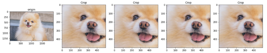 왼쪽은 누가 봐도 강아지입니다. 하지만 crop한 사진들 역시 강아지인건 확실하기 때문에 저런 데이터를 추가로 학습시키게 모형에 넣어주게 됩니다.