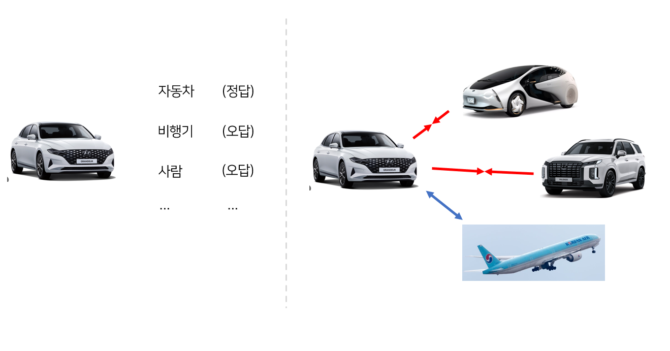 왼쪽의 경우는 정답 label이 주어져서 이를 바탕으로 모형을 학습하는 방법이고 우측의 경우는 "비교"를 수행하면서 학습을 수행하는 것을 의미한다. 이 비교를 수행하려면 결국 "유사성"을 정의할 필요가 있는데 이것은 어떻게 학습하는 걸까? 여기서는 "공유 정보 (Mutual Information)"라는 것을 바탕으로 유사성을 측정하고 "잡음 대비 추정 (Noise Contrastive Estimation)"이라는 기술을 사용하여 학습을 수행한다. 하나씩 살펴보자