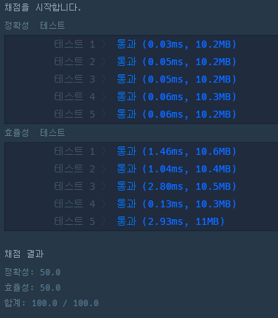 하지만 효율성 부분에서 통과를 못했는데 그 이유가 바로 시간 복잡도가 매우 크기 때문이다..!