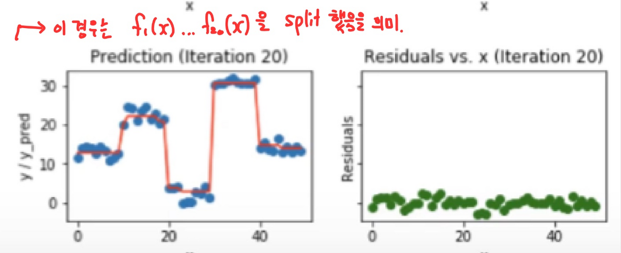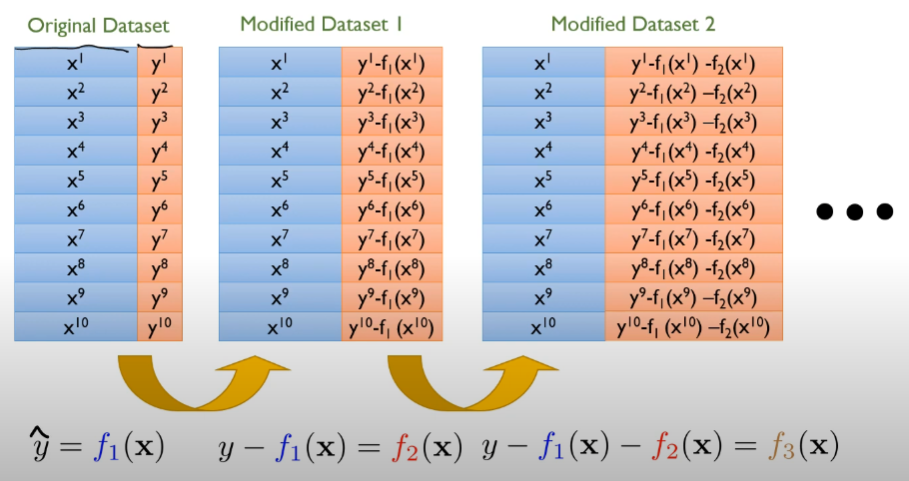 앞선 모델이 못 맞춘 경우만 맞추려고 하는 모델을 구축하는 것이다.