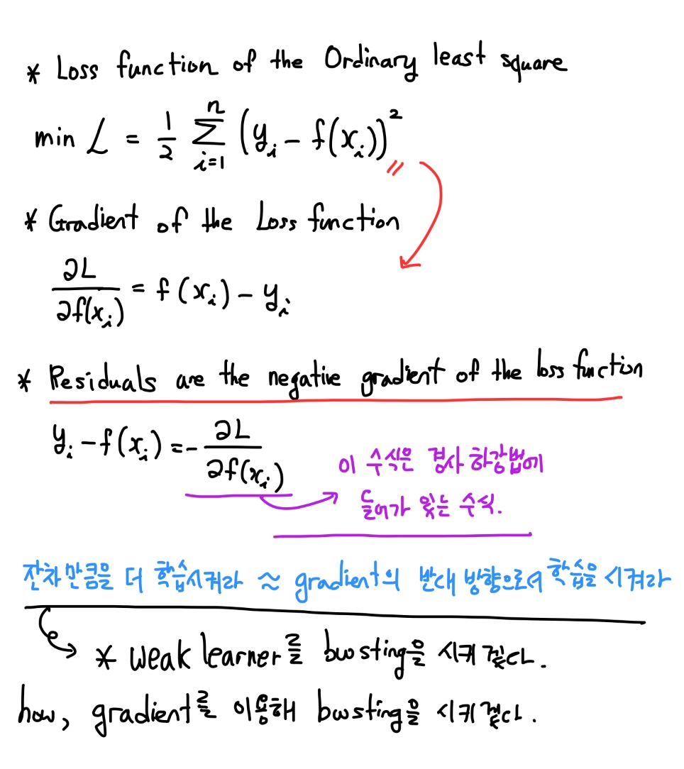 즉, 잔차 값은 gradient의 마이너스를 곱한 값이 되고,