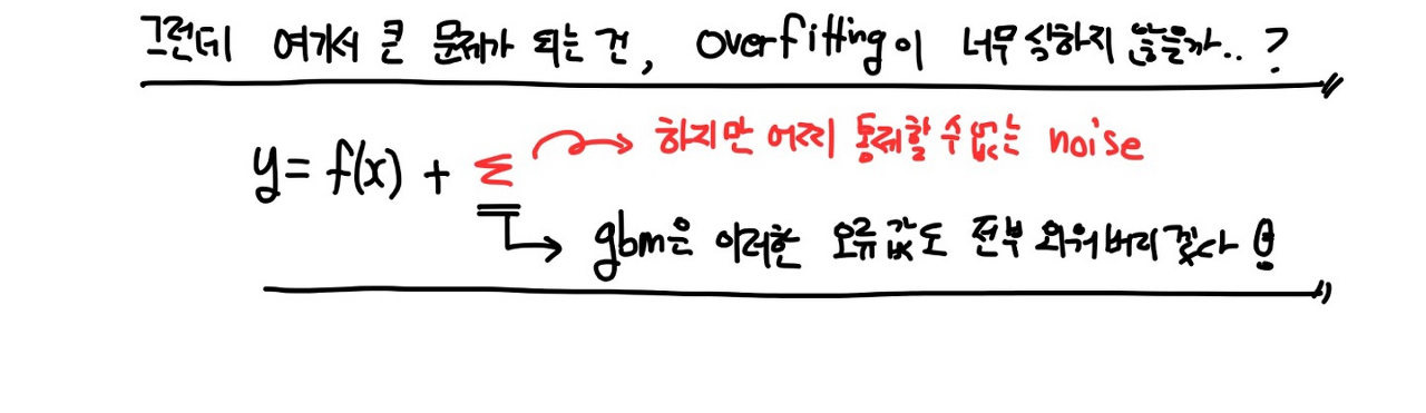 하지만 이렇게 완벽해보이는 gradient boosting이 마주하는 문제는 직관적으로 알 수 있듯, overfitting이다.