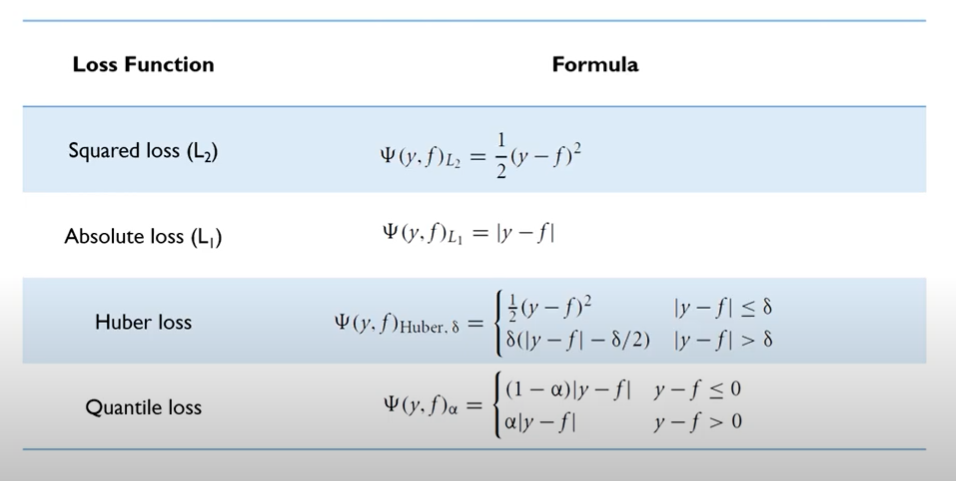 또한 gbm은 loss function을 무엇을 사용하는 지에 따라 성능에 중요한 영향을 끼치는데