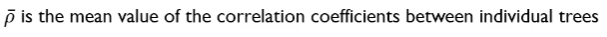 위 수식의 경우 트리 간의 격차가 커지는 경우 줄어들고 트리 간의 상관성이 높을 수록 값이 커진다.