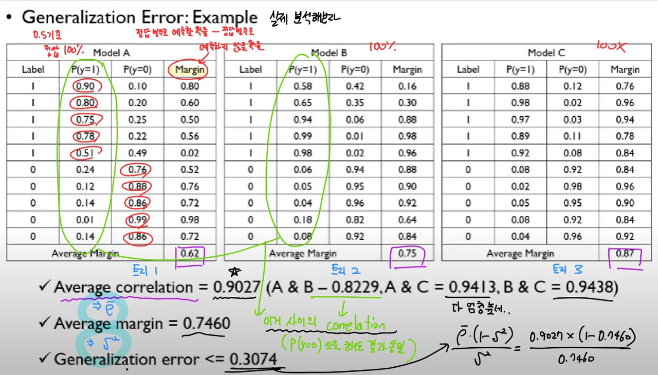 그리고 개별 트리의 갯수가 충분히 크다면, 일반화 성능의 upper bound는 다음과 같이 설정할 수 있다.