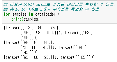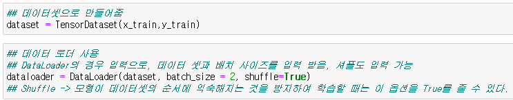 ( 유원준 님은 책 상에서 Tensor를 바로 입력받을 수 있는 TensorDataset을 사용하였습니다. )