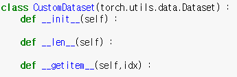 Pytorch에서는 데이터셋을 상속받아 직접 데이터셋을 지정하는 식으로 많이 사용한다고 한다.