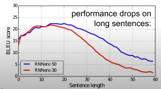 다음 그림의 경우 만일 문장의 길이가 20을 넘어가게 되면 점점 번역의 정확도가 감소하는 것을 확인할 수 있다.