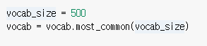 분석의 용이를 위해 등장 빈도수 상위 500개 단어만 추리도록 하겠습니다.