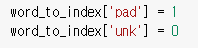 'pad', 'unk' 에 대해서는 뒤에서 설명하도록 하겠습니다.