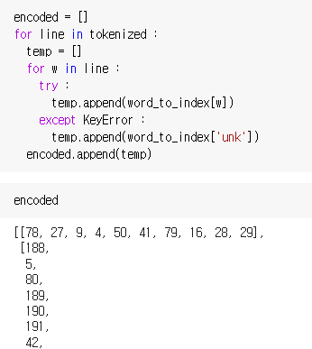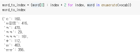 이제 단어들에 고유한 정수 값을 부여하는 과정을 거치도록 하겠습니다.