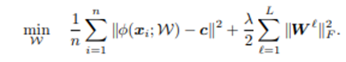 DeepSVDD의 loss function은 다음과 같이 구성됩니다.