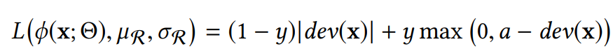 즉, normal 할수록 µ_r 에 더 가까운 점수를 형성하게 될거지만 abnormal할 수록 µ_r로부터 더 거리가 있는 점수가 나오겠죠. 이러한 deviation 정도를 사용하여 loss function을 정의하게 됩니다.