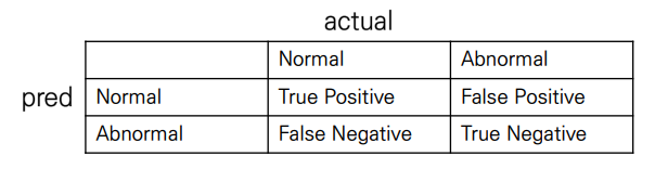 actual은 말 그대로 실제 label 값이고 pred는 prediction의 결과입니다. 다음과 같은 상황에서 우리는 True Positive, True Negative, False Positive, False Negative를 정의할 수 있고 이 수치들을 사용해서 다음과 같은 특징들을 정리할 수 있습니다.